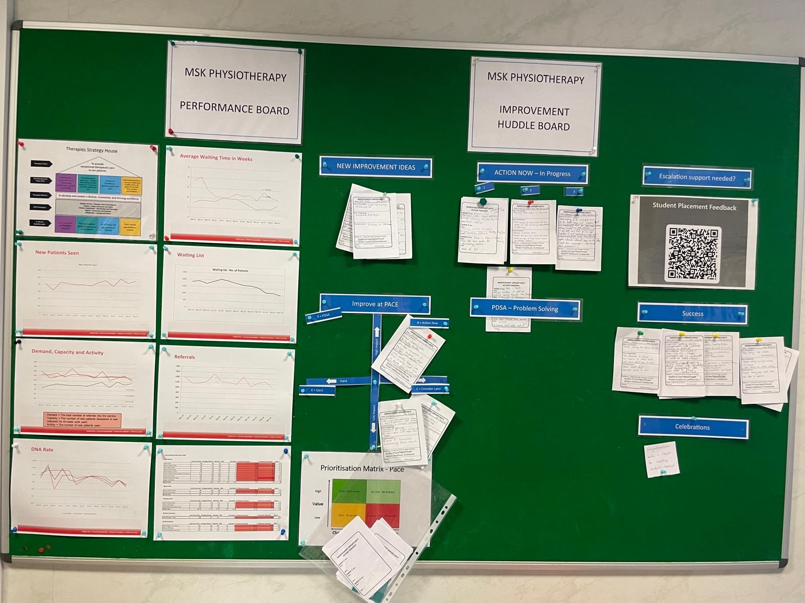 The introduction of Improvement Huddles across teams is a key mechanism to facilitating improvement conversations and actions. An Improvement Huddle is a 15min, structured conversation which happens regularly, ideally once a week. Anyone can submit a change idea using an opportunity ‘ticket’. These are discussed, prioritised and actioned at the meeting, allowing everyone to participate in the process. Success is celebrated and progress is monitored.